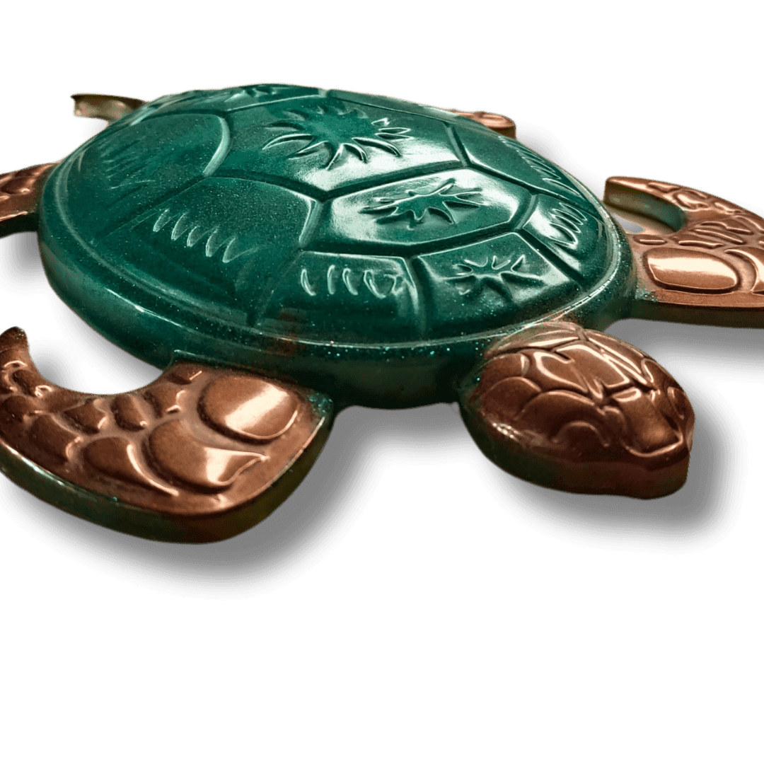 Chaque tortue est une pièce d’art distincte. La résine permet une créativité sans bornes, offrant des tortues aux couleurs et effets diversifiés.